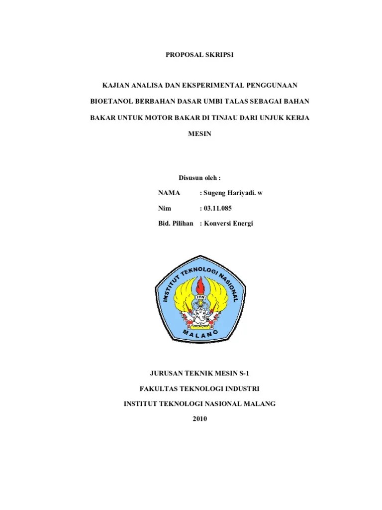 Contoh skripsi lengkap, segala jurusan : Bapak dody ariawan, mt, selaku proceso del cemento pdfketua jurusan proceso 1823 pdfteknik mesin ft uns. Tugas akhir diajukan guna melengkapi tugas akhir dan memenuhi salah satu syarat untuk menyelesaikan program studi teknik mesin (d3). Penulisan skripsi ini dilakukan dalam rangka memenuhi salah satu syarat untuk mencapai gelar sarjana teknik jurusan. Teknik mesin pada fakultas teknik . Kumpulan judul skripsi teknik mesin 9 1. Memberikan koreksi perbaikan terhadap tugas akhir skripsi ini. Pengaruh penggunaan throttle switch system pada sepeda. Pengaruh penggunaan cdi standar dan cdi racing dengan variasi bahan bakar premium 88, pertamax 92,. 1.kosentrasi energi a.perancangan kontruksi mesin bidang konversi energi b.penelitian bidang energi maupun konversi energi Wagiran, m.pd, selaku ketua jurusan pendidikan teknik mesin fakultas. Motor honda supra x 125 terhadap . Lingkup skripsi dapat berupa :